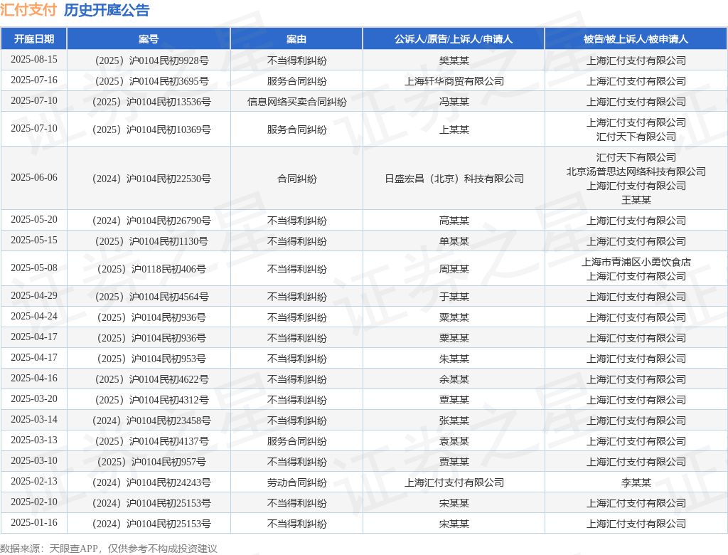 本站消息,根据天眼查APP显示,近日公布了一则上海汇付支付有限公司作为被告/被上诉人的开庭公告,详细内容如下:
